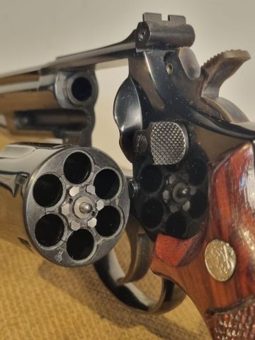 REVOLVER SPORTIVO CAL. 357 MAG, 1973, SPINATO, 6 RD, MIRINO PARTRIDGE, COUNTERBORING, CANE E GRILLETTO TARTARUGATI SEMITARGET, CANNA, MECCANICA ED ESTETICA PERFETTE, SEMINUOVO NELLA SUA SCATOLA ORIGINALE CON DOCUMENTI ED ACCESSORI. - codice 5943