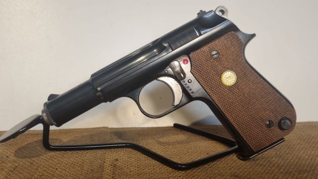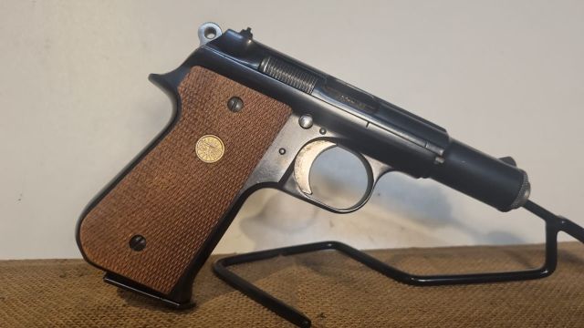 PISTOLA CAL. 7,65 BR, PRODOTTA IN SPAGNA ANNI 70, 9RD, SOLO SA CON CANE ESTERNO, SPLENDIDA BRUNITURA LUCIDA E BELLISSIME GUANCETTE IN NOCE ZIGRINATE CON LOGO ASTRA. PARI AL NUOVO.