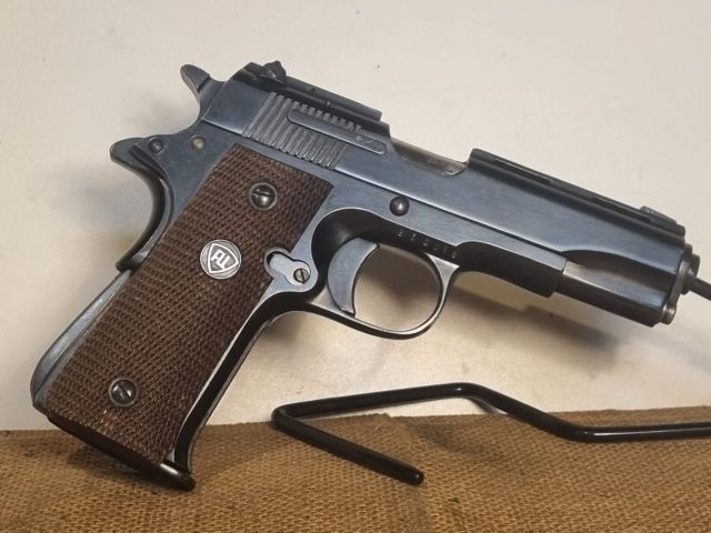 PISTOLA CAL. 7,65 BR, 8RD, SOLO SA. ARMA SPAGNOLA IMPORTATA DA FRANCHI NEGLI ANNI 70, SIMILE A UNA 1911 IN SCALA RIDOTTA, CON SICURA MANUALE E DORSALE, CANNA FISSA , MIRE REGOLABILI E PICCOLA BINDELLA SOPRA IL CARRELLO. IN OTTIME CONDIZIONI., SEMINUOVA.
