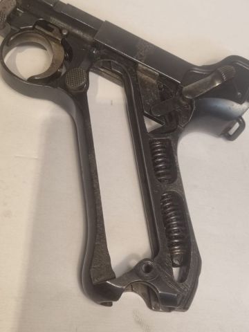 PISTOLA SPORTIVA CAL. 9X19, 1921, MARINA DI WEIMAR, FLOTTA DELL'EST. MONOMATRICOLA ANCHE GUANCETTE MA NON CARICATORE, CON MARCHI DI WEIMAR SUL FONDELLO, COSI' COME L'ARMA SUL LATO DX E SULLA PARTE SUPERIORE DELLA CANNA. SUL DORSO RIPORTA I MARCHI DELLA MARINA DI WEIMAR - ANCORA CON M- E IL MARCHIO O.237 DELLA FLOTTA. ANTERIORMENTE RIPORTA F.A.3.3 E SOS SUL TELAIO NELLA PARTE POSTERIORE. SUL TELAIO LATO SX UN MARCHIO CON AQUILA DI WEIMAR CON ALI BASSE E M SOTTOSTANTE. CANNA PERFETTA, LUCIDA CON SPIGOLI MOLTO DEFINITI. PICCOLI SEGNI DI CORROSIONE SUL TELAIO SOTTO LE GUANCETTE E MINIMI SULLA PIASTRINA E SUL FIANCO SX DEL TELAIO. ARMA INTERNAMENTE FINITA IN BIANCO, BRUNITURA ESTERNA IN BUONE CONDIZIONI E APPARENTEMENTE ORIGINALE, TENDENTE AL MARRONE NEI PUNTI PIU' VISSUTI, MA COMPLESSIVAMENTE BUONA/OTTIMA CONSIDERANDO LE CONDIZIONI DI UTILIZZO IN MARE E GLI OLTRE 100 ANNI DI VITA. PAGLIERINO SUI PARTICOLARI SBIADITO MA ANCORA BEN VISIBILE.
