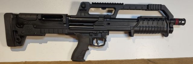 fucile a pompa cal 12/76 bull pup con canna da 18", serbatoio tubolare da 5rd., maniglione con mire regolabili per tiro a palla, base piccatinny per montaggio punto rosso e due rail laterali per accessori tipo torcia o laser. Dotato di rompifiamma. Nuovo in scatola con documenti, istruzioni, cinghia in cordura e accessori.