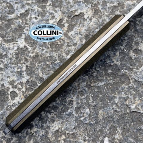 Il Böker AK1 MagnaCut Gold nasce come coltello EDC a lama fissa compatto progettato per offrire massima efficienza nel taglio quotidiano con il minimo ingombro. Disegnato dal giovane knifemaker tedesco Alex Kremer e sviluppato in collaborazione con Daily Customs, questo modello interpreta in chiave moderna la filosofia nordica del coltello funzionale: linee pulite, dimensioni ridotte e grande attenzione alla qualità dei materiali. La lama in acciaio CPM MagnaCut garantisce eccellente tenuta del filo, elevata resistenza alla corrosione e grande robustezza strutturale, rendendolo ideale per un utilizzo EDC preciso e affidabile. Le guancette removibili in alluminio anodizzato oro aggiungono un carattere estetico distintivo mantenendo peso contenuto e ottima ergonomia. Realizzato artigianalmente presso la manifattura Böker di Solingen, l’AK1 rappresenta un perfetto equilibrio tra coltello da utilizzo quotidiano e oggetto di alto livello per appassionati di coltelleria contemp