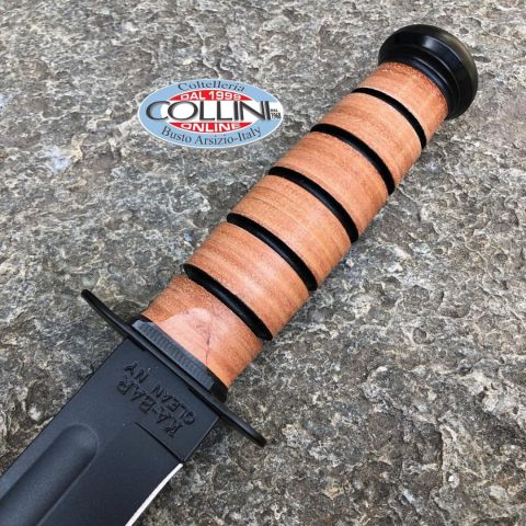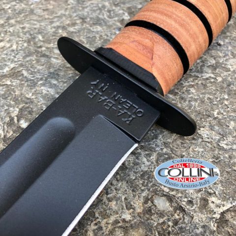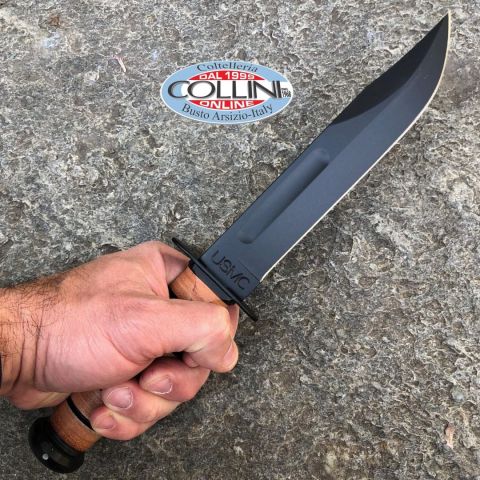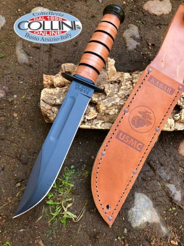 Il KA-BAR USMC è considerato uno tra i più famosi coltelli al mondo. Venne originariamente ideato per le truppe degli Stati Uniti nella Seconda Guerra Mondiale e da allora la sua efficacia è stata universalmente riconosciuta e impiegata in tanti altri scenari militari.  Destinazione d'uso: Tattico/MilitareLama: in acciaio al carbonio 1095 56/58HRCManicatura: anelli di cuoioLunghezza lama: 180mm.Spessore della lama: 4mm.Lunghezza chiuso: -mm.Lunghezza totale: 305mm.Bilanciatura: arretrata - 1 cm. dal ramo di guardia inferiorePeso: 305g.Chiusura: -Clip: -Fodero: in cuoioNote: -  La Coltelleria Collini di Busto Arsizio è distributore ufficiale per l'Italia del marchio KA-BAR