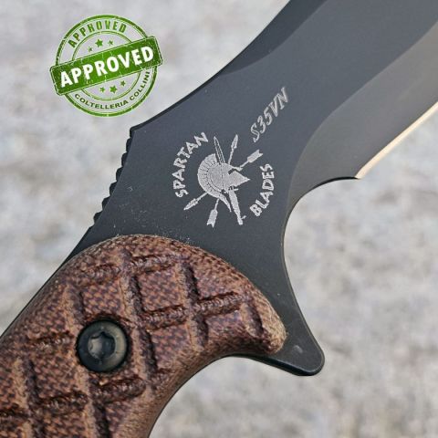 COLTELLO PRECEDENTEMENTE ACQUISTATO, DA COLLEZIONE PRIVATA* Provenienza: Ritirato da un privato, precedentemente acquistato* Condizioni: Globalmente in buone condizioni, con segni estetici superficiali sulla finitura, dati dall'inserimento ed estrazione dal fodero* Reperibile in commercio: Fuori produzione* Affilatura: Di fabbrica, migliorabile* Segni su lama: Segni estetici superficiali sulla finitura, dati dall'inserimento ed estrazione dal fodero* Segni su impugnatura: Nessuno* Scatola: Presente* Fodero: Presente* Manuali, Certificati e Garanzie: -* Controllato e Certificato dal nostro laboratorio interno Destinazione d'uso: Tattico/MilitareTipo di produzione: IndustrialePaese di produzione: USALama: in acciaio inox CPM-S35VN 59/60HRCFinitura Lama: Black SpartaCoatManicatura: Canvas Micarta con lavorazione 3DLunghezza lama: 130mm.Spessore lama: 4.8mm.Lunghezza totale: 254mm.Peso: 217g.Fodero: in Nylon, compatibile con attacchi M.O.L.L.E.Confezione: Scatola di cartone con loghi Spart