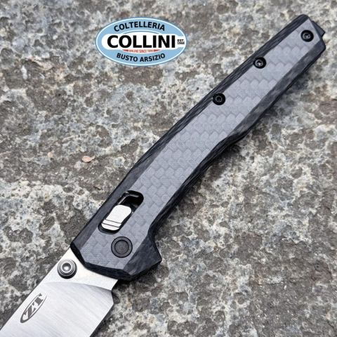 Ispirato al leggendario F-117 Stealth, lo 0117 trasferisce la stessa precisione angolare e l’efficienza ingegneristica in un moderno everyday carry. Il profilo sottile e scolpito è inconfondibilmente ZT: raffinato, contemporaneo e pensato per chi apprezza la complessità discreta. Il manico leggero in fibra di carbonio si abbina a una lama in CPM MagnaCut bicolore, con finiture satinata e stonewashed, in perfetto equilibrio tra eleganza e carattere. Il thumb stud custom e il meccanismo DuraLock lavorato con precisione garantiscono un’azione fluida e sicura, mentre i tubetti distanziali in titanio e i liner parzialmente integrati mantengono la struttura solida senza appesantire. Lineare e funzionale, lo 0117 rappresenta la visione ZT della precisione moderna. Caratteristiche principali Folder premium Made in USA progettato per un EDC sottile e raffinato; guancette leggere in fibra di carbonio Lama in CPM MagnaCut con eccellente ritenzione del filo, tenacità e resistenza alla corrosione;