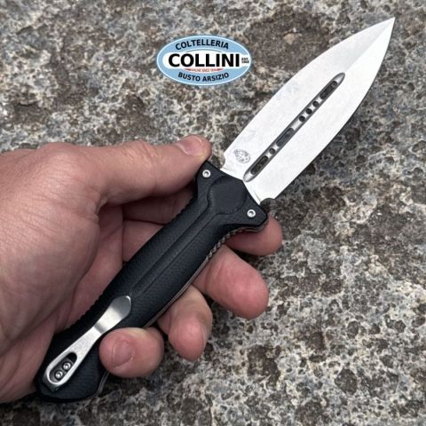 La vostra scelta? Il Cheus! - Alexey Ponomarev di Brutalica rende più facile la decisione sul coltello da scegliere con il massiccio Boker Plus Cheus. Con una silhouette che ricorda un pugnale tattico, il coltello da tasca è incredibilmente dinamico. Cuscinetti a sfera, affilatura su un solo lato, finitura stonewash o aperture per ridurre il peso nella scanalatura cava: la lama simmetrica Spearpoint in VG10 convince per la sua affilatezza sotto ogni aspetto. Quando è aperta, il flipper scompare completamente nel manico per un aspetto ordinato. Le guancette ergonomiche dell'impugnatura in G10 antiscivolo sono dotate di ulteriori scanalature sulla parte superiore e inferiore e garantiscono una presa sicura, mentre l'incavo centrale dell'impugnatura riprende la scanalatura cava della lama. Il linerlock, che blocca saldamente la lama, è splendidamente integrato - così anche i lavori di taglio più difficili non hanno altra scelta. Fornito con una clip tip-up e una custodia in nylon di alta