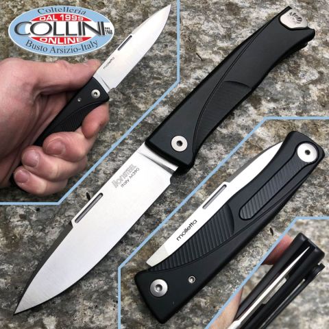 Destinazione d'uso: EDC/Sportivo Tipo di produzione: IndustrialePaese di produzione: ItaliaLama: In acciaio inox M390 59/60HRC Trattamento lama: SatinataManicatura: Alluminio ricavato dal pienoLunghezza lama: 80mm.Spessore lama: 3.5mm.Lunghezza totale: 180mm.Spessore da chiuso: 18mm.Peso: 62g.Chiusura: SlipJoint con battente in acciaioClip: a scomparsa, ricavata dal pienoConfezione: scatola di cartone con loghi LionSteelNote: -