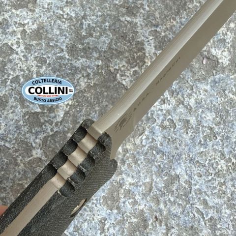 Lo Spartan Harsey Difensa è un fixed blade progettato da William W. Harsey Jr. che affonda le sue radici nella storia militare della Seconda Guerra Mondiale, richiamando la Battaglia di Monte La Difensa e la collaborazione tra forze speciali statunitensi e canadesi. Questo coltello nasce come strumento operativo moderno, concepito per integrare capacità tattiche e di sopravvivenza in un’unica piattaforma affidabile. La costruzione full tang, l’utilizzo dell’acciaio CPM MagnaCut ad alte prestazioni e la geometria spear point con affilatura flat garantiscono penetrazione, controllo e resistenza in scenari complessi. La manicatura in micarta 3D lavorata offre presa stabile anche in condizioni critiche, rendendolo una scelta concreta per utilizzo professionale, outdoor avanzato e collezionismo tecnico. Destinazione d'uso: Tattico - survival - outdoor Tipo di produzione: IndustrialePaese di produzione: USALama: CPM MagnaCut (61-63 HRC)Finitura lama: ZrN Flat Dark Earth (